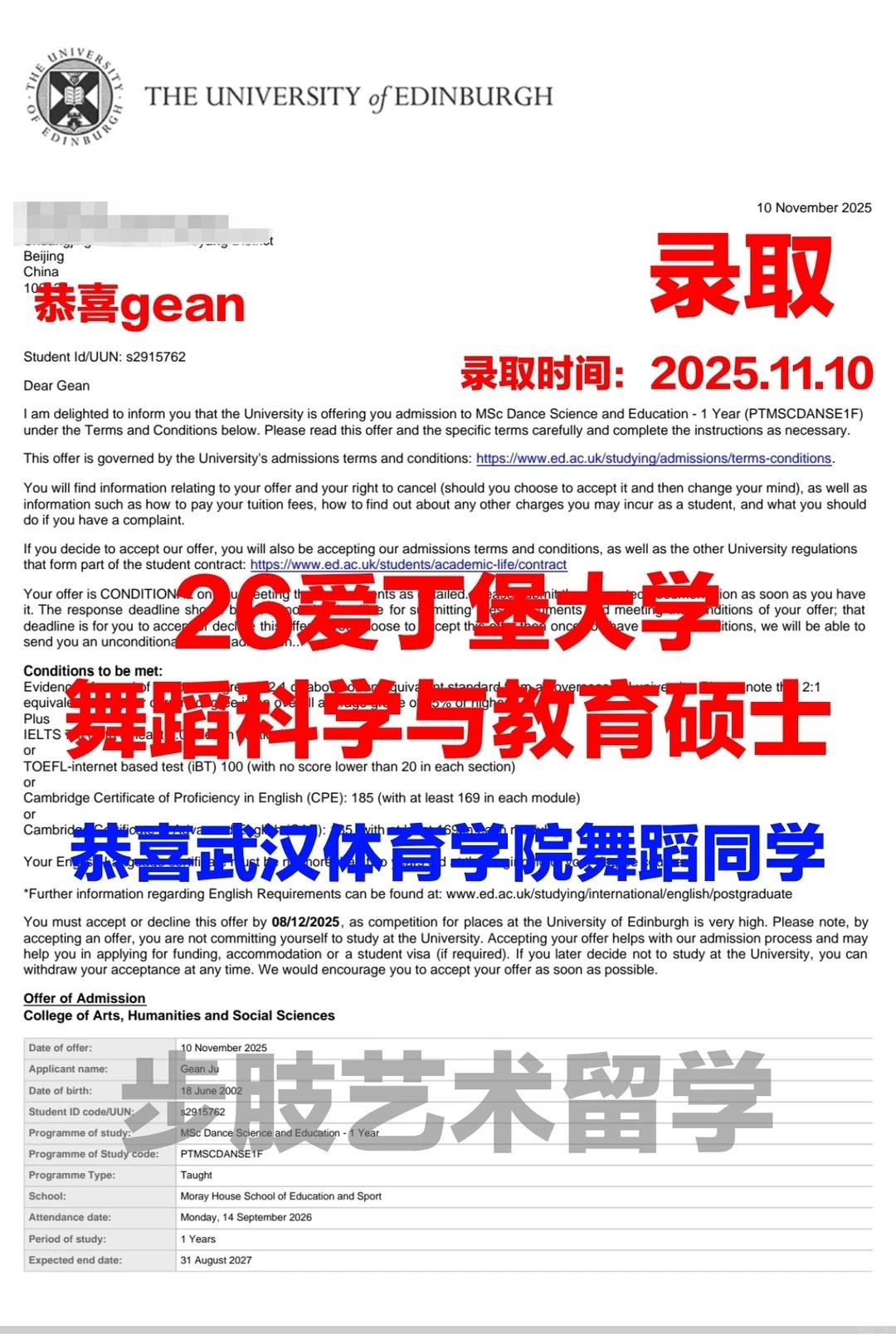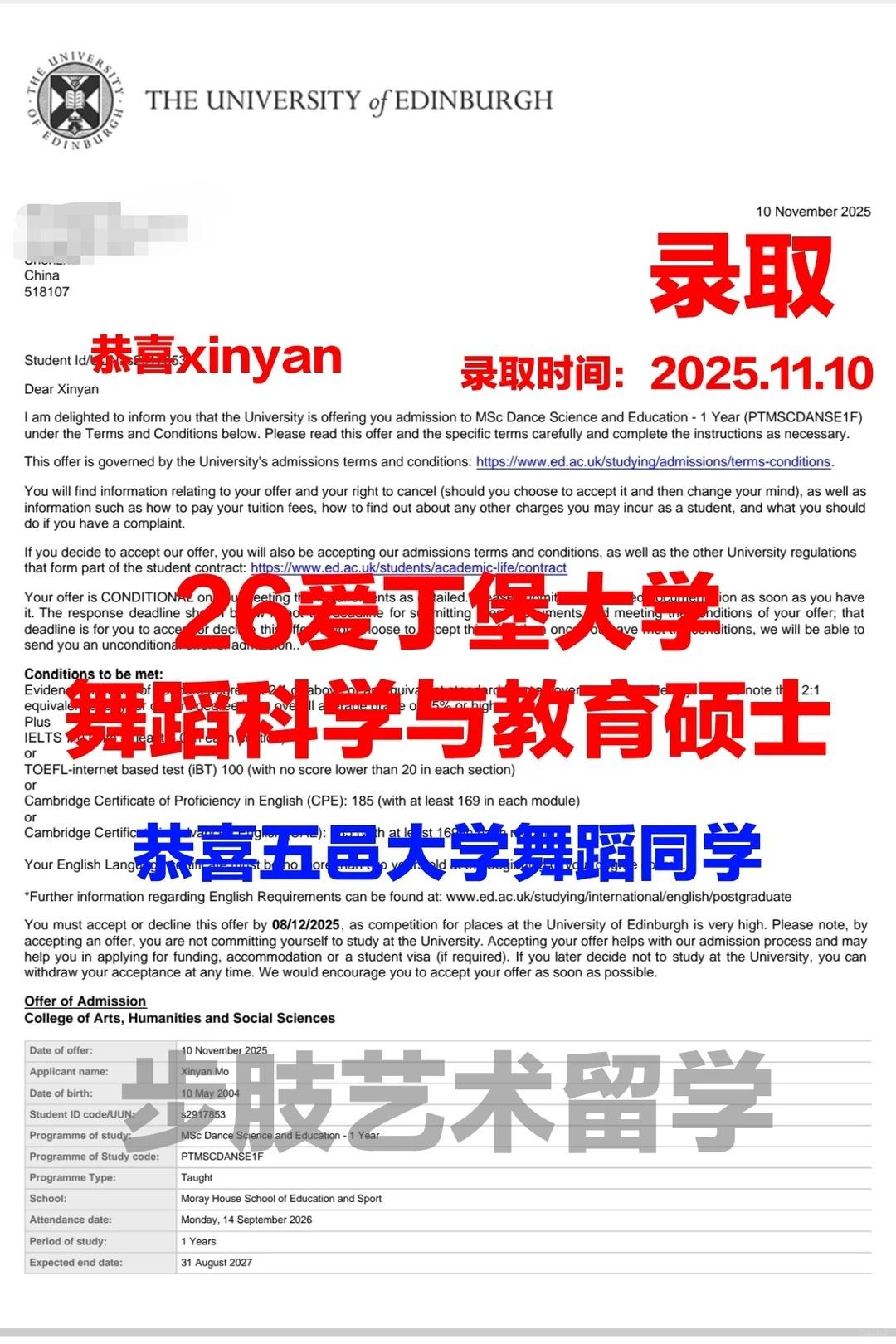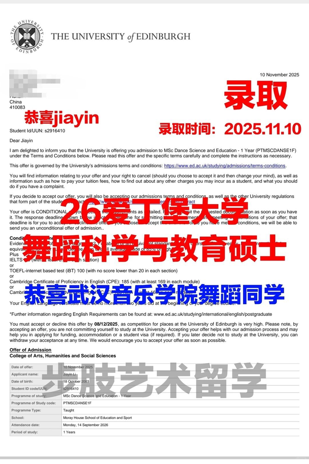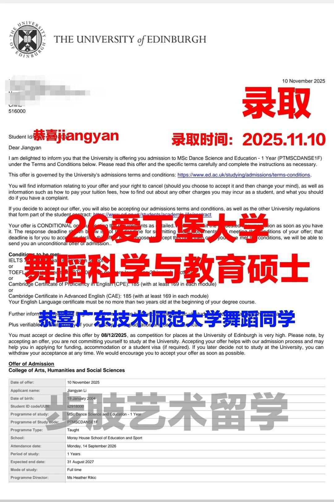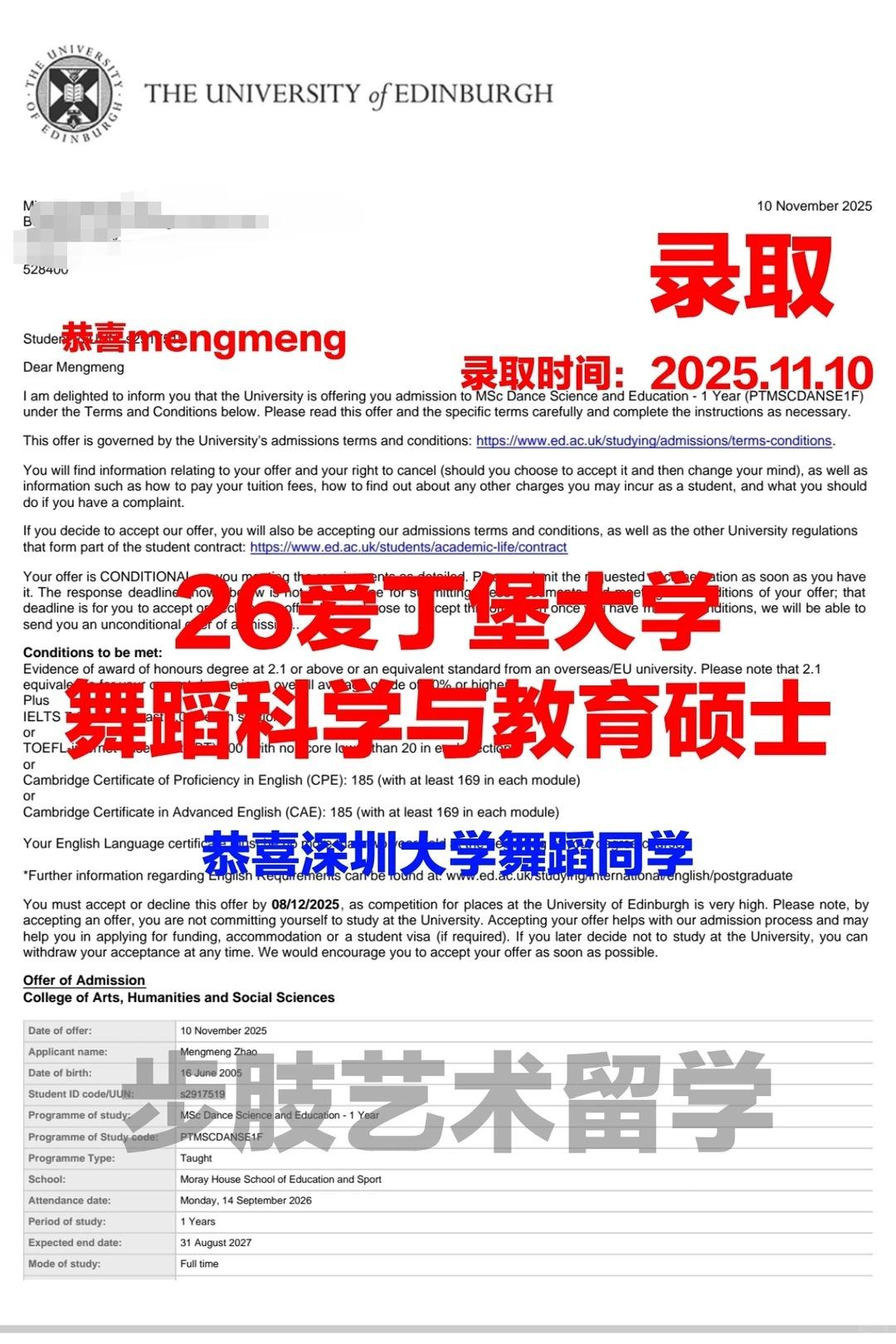 26舞蹈留学|爱丁堡大学首轮六份录取