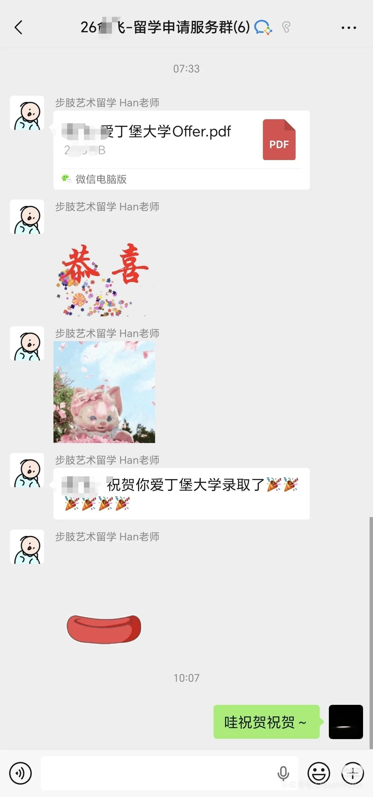 【步肢】从罗汉普顿到爱丁堡的舞蹈梦 offer时间:2025.12.11 院校专业:爱丁堡大学舞蹈科学与教育硕士 学员背景:英国罗汉普顿大学本科 恭喜YU Fei同学