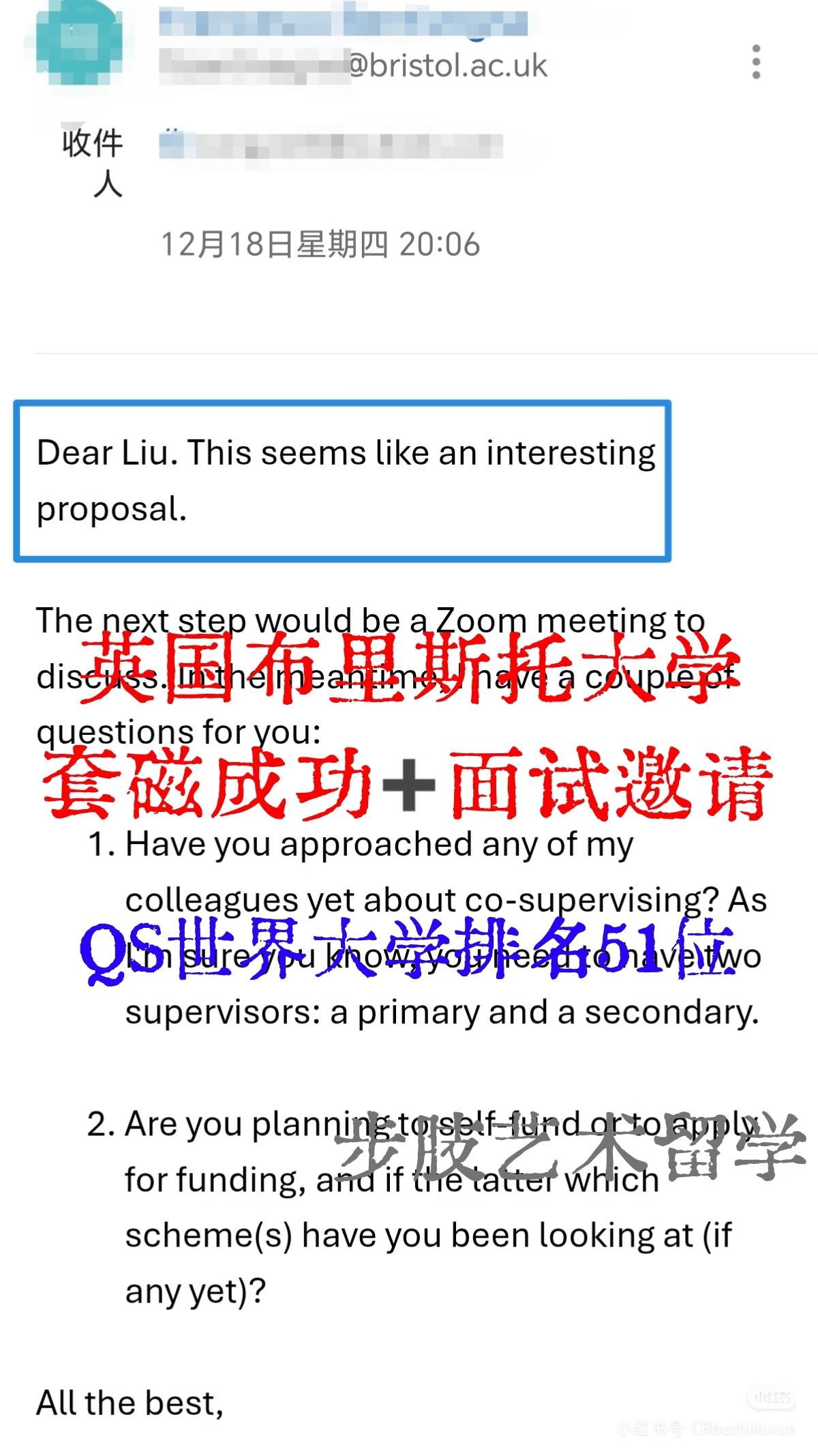 【步肢】QS排名51舞蹈博士面试邀请 舞蹈博士面试邀请 英国布里斯托大学(QS排名51) 2025.12.18 恭喜Liu同学